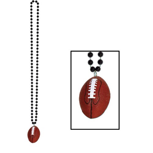 Beads w/Football Medallion black Party Accessory 1 count 1/Card