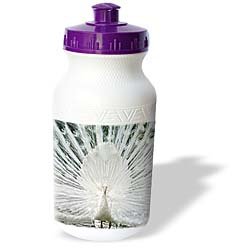 White Peacock Water Bottle is 21oz capacity - 8 inch tall, 2.5 inch diameter. Sports bottle have become a welcome addition to today's fitness craze. Use sports water bottle while exercising, gardening or watching sports events. Water bottle comes with image on both sides and it is top shelf dishwasher safe. .