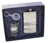 Product Description : The Yorkshire flask gift set features a genuine pewter flask that is weather and temperature resistant. The flask has an antique finish with a banded frame adding to its classic looks. The flask gift set comes equipped with a plastic funnel and pewter shot cup. Fill up your flask with convenience with the funnel while sharing your favorite drink with a friend thanks to the shot cup. For a custom look, the flask is customizable so make sure personalized it with our engraving options. Set Includes:6 oz. Pewter FlaskPewter Shot CupPlastic FunnelDimensions of Flask: 4.42" (Height) x 3.40" (Width) x 1.06" (Thickness)Weight of Flask: 10.74 oz.Flask and Shot Cup made with Genuine PewterPlease note: Due to the curvature of the shot glass we do not offer engraving on shot glass. Engraving is done on flask only.