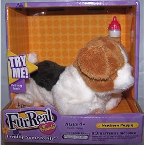 Product Description : This little puppy has realistic sounds and movements that teach cildren about newborn animals. He is soft and cuddly. Uses aaa batteries