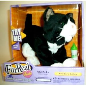 Product Description : Bring home this lovable, cuddly newborn kitten that really comes to life as it responds to your love and attention. Just like a real kitten, this electronic version lifts its head, opens its eyes, and even makes newborn kitten sounds. Keep interacting with your kitten, and it becomes more playful. Be sure to feed your kitten with its bottle. Take care of your kitten and you're sure to be the best of friends! Kitten figure comes with bottle and a special adoption certificate.