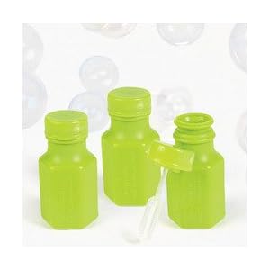 Product Description : Plastic Mini Hexagon Neon Green Bubble Bottles. Each .3-oz. bottle includes a wand. Each piece shrink-wrapped and bar coded. 1 3/4"- 1.5 poundsManufacturer Recomended Age: 3 years and up