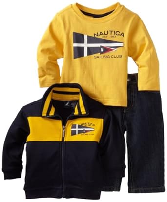 Nautica Sportswear Kids Baby-Boys Infant 3 Piece Full Zip Knit Top With Denim Jean Set